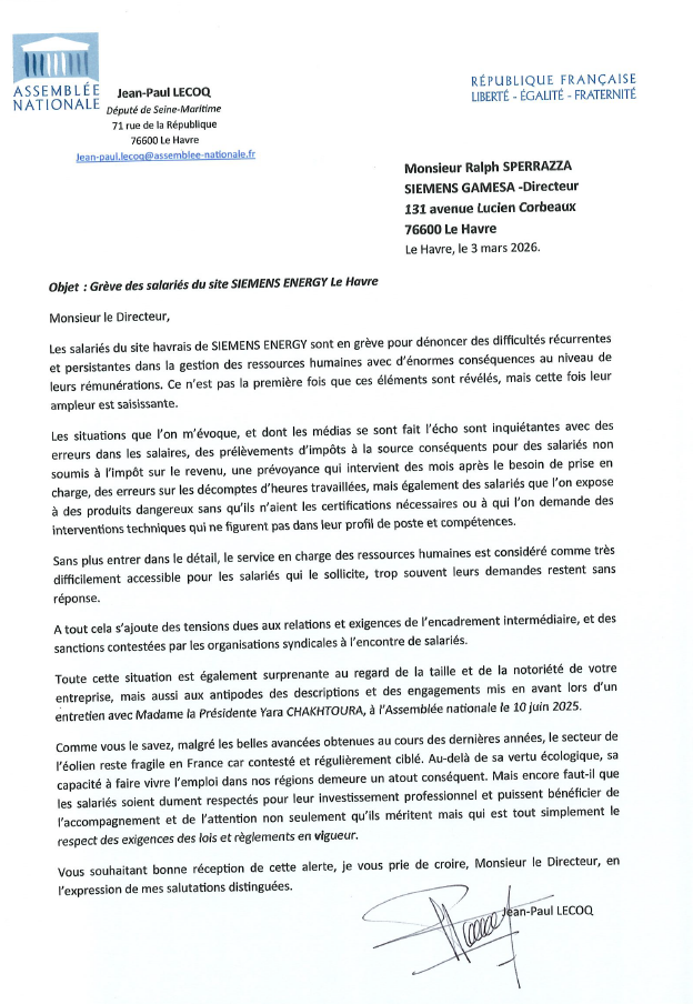 Siemens Energy Le Havre : Je demande le respect et un meilleur accompagnement des salariés (02-03-2026)