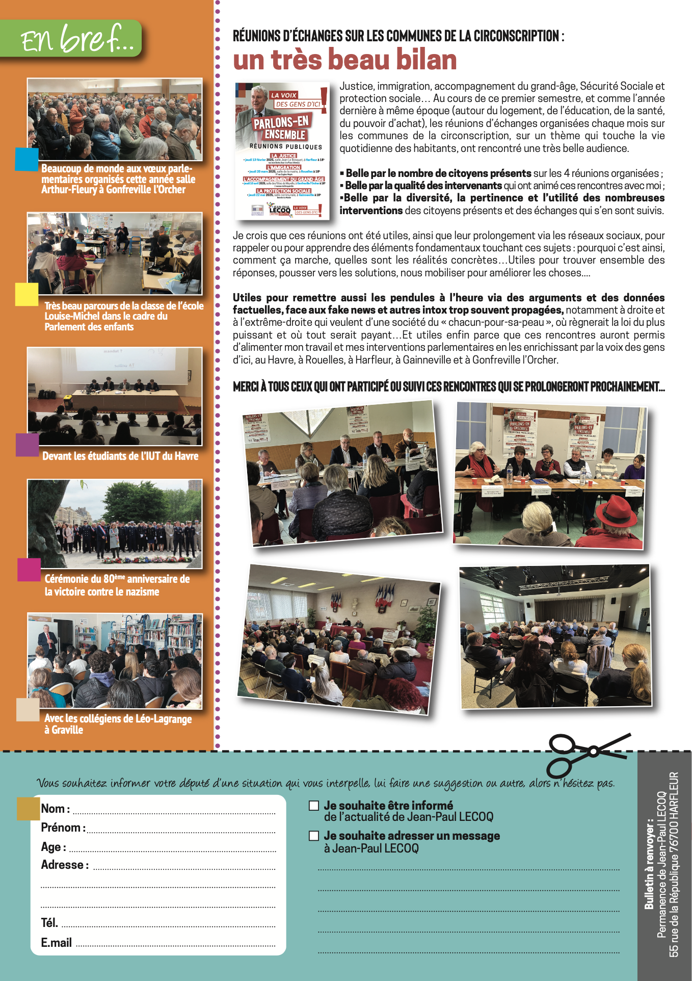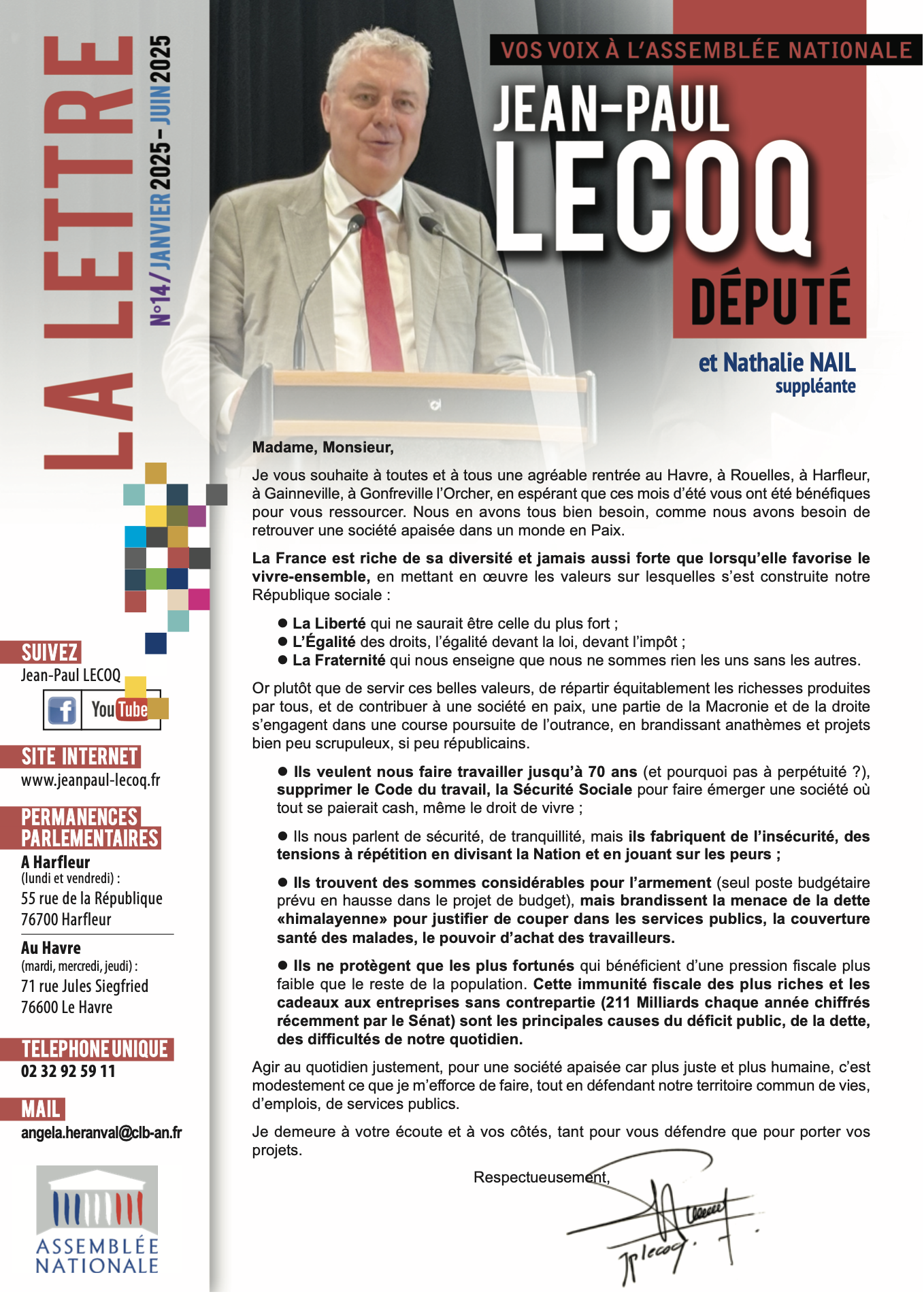 Le 14ème numéro de cette lettre, qui couvre le premier semestre 2025, vient d’être édité et est en cours de distribution auprès des foyers de la circonscription. La voici téléchargeable ici :