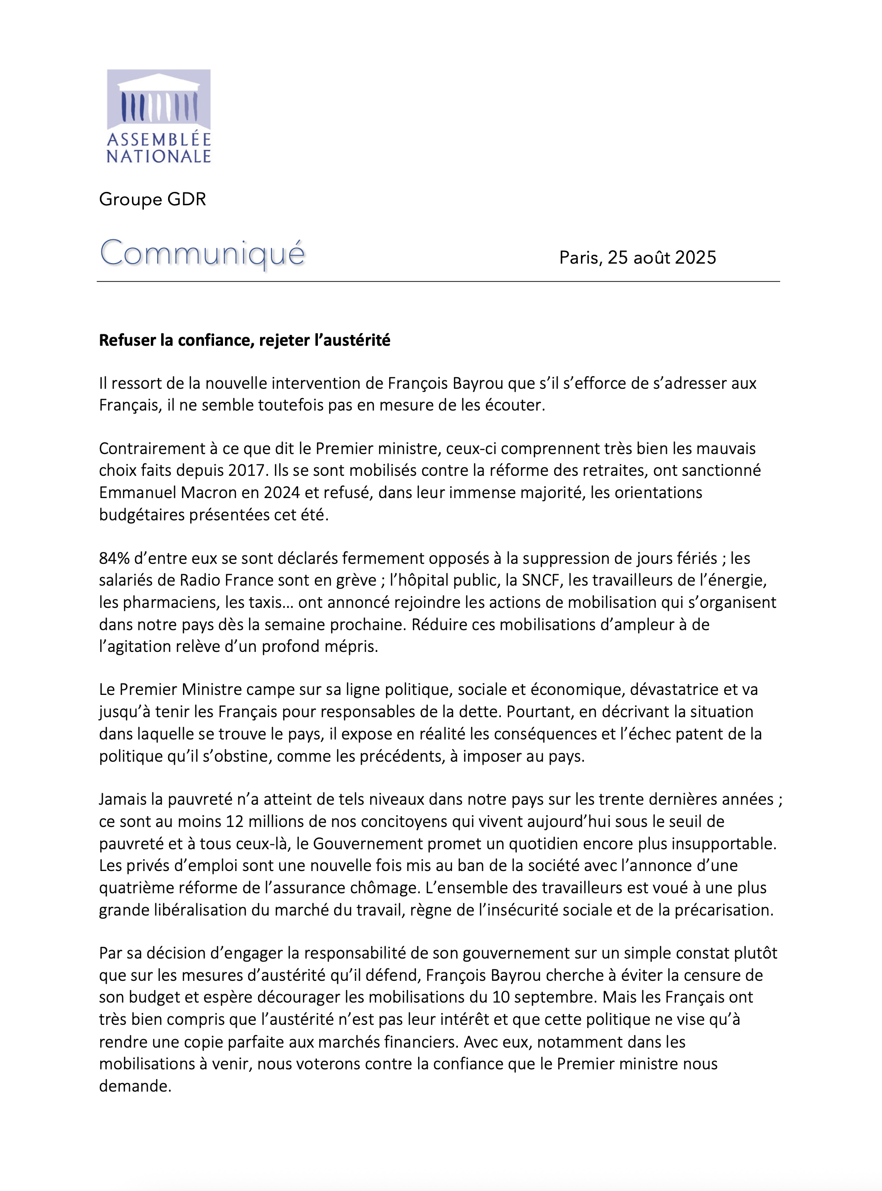 | Le communiqué de mon groupe parlementaire |
