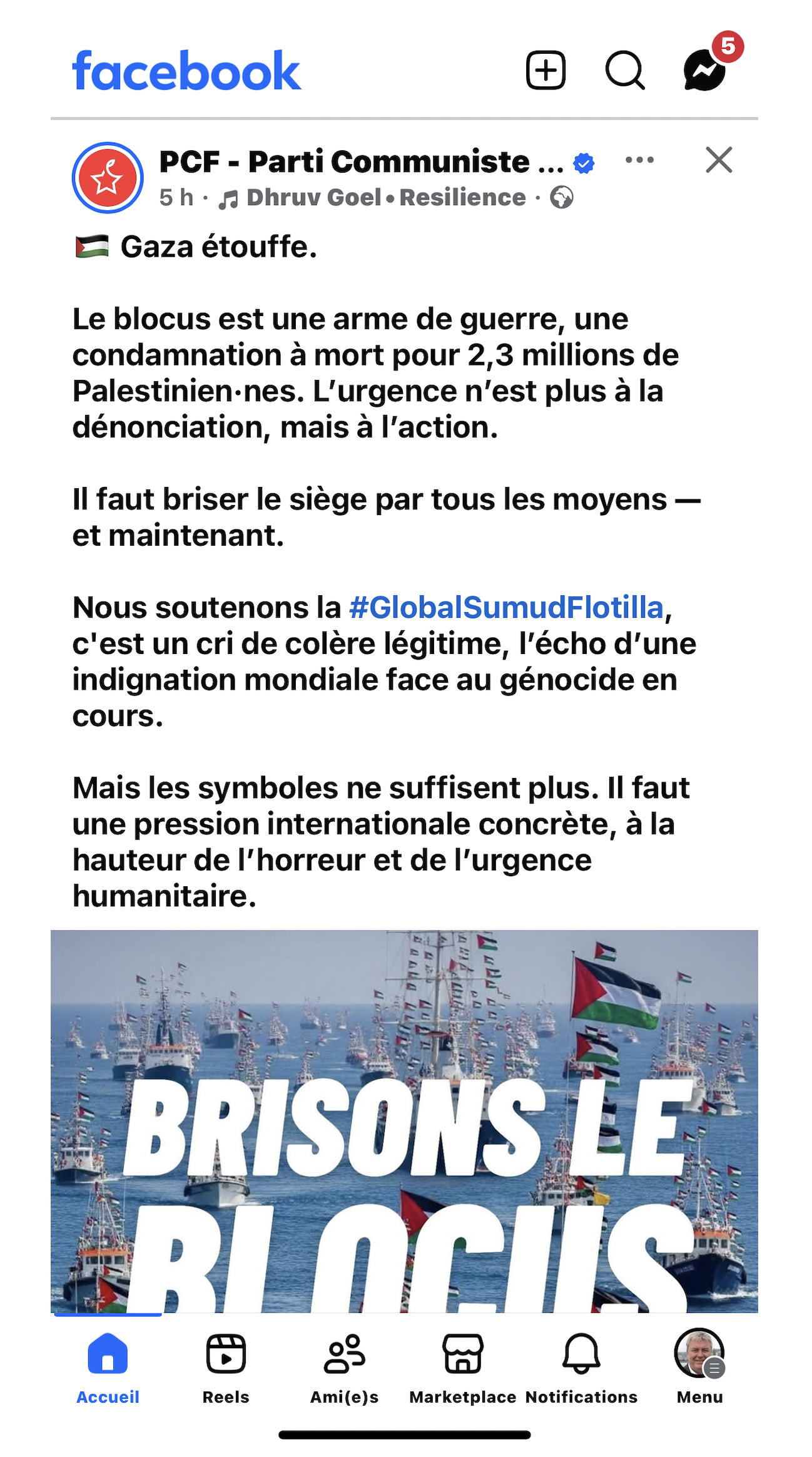 Malgré son impunité constante, depuis deux ans, les actions de solidarité avec la Palestine et pour s’opposer au génocide en cours ne s’essoufflent pas, au contraire. Elles se réinventent même dans leurs formes et leur diversité grâce à la société civile qui fait honneur à nos valeurs internationalistes et humanistes. Le mouvement des flottilles est un exemple concret de cet immense mouvement de solidarité internationale.