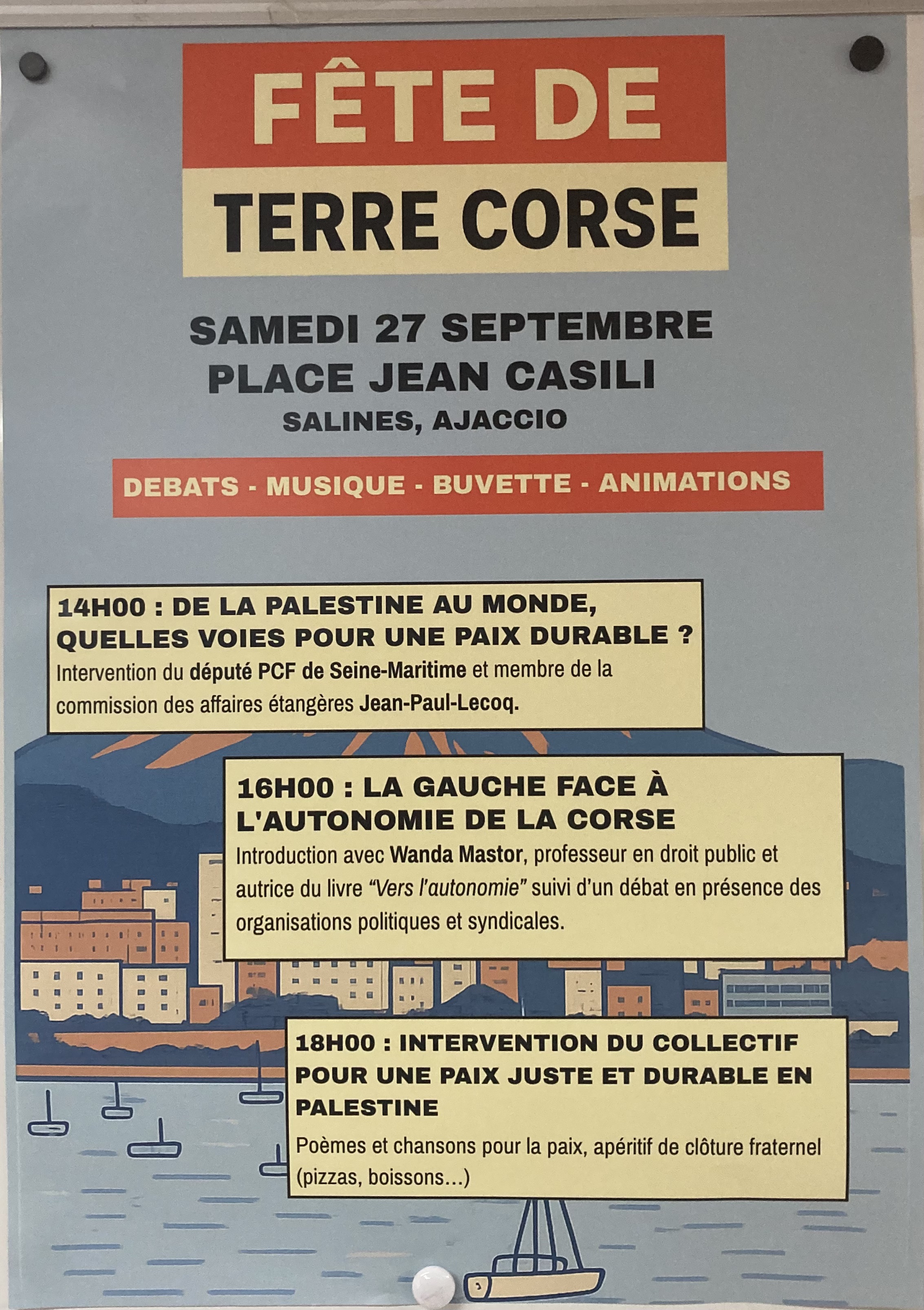27 septembre - J’ai répondu avec plaisir à l’invitation de la Fédération de Corse-du-Sud du Parti Communiste Français pour intervenir sur la Fête du journal Terre Corse à Ajaccio.