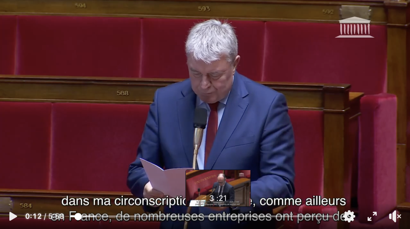 Cette intervention a été prononcée dans le cadre de la séance des questions orales sans débat qui permet aux députés d’interroger un ministre sur une question précise liée à sa circonscription. Les députés qui se sont inscrits et les ministres concernés se succèdent dans l’hémicycle. La séance étant enregistrée, elle est présidée par un vice-président de l’Assemblée.