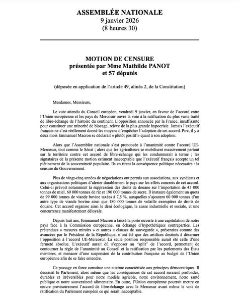 Mercosur : J’ai voté la motion de censure pour faire tomber le gouvernement