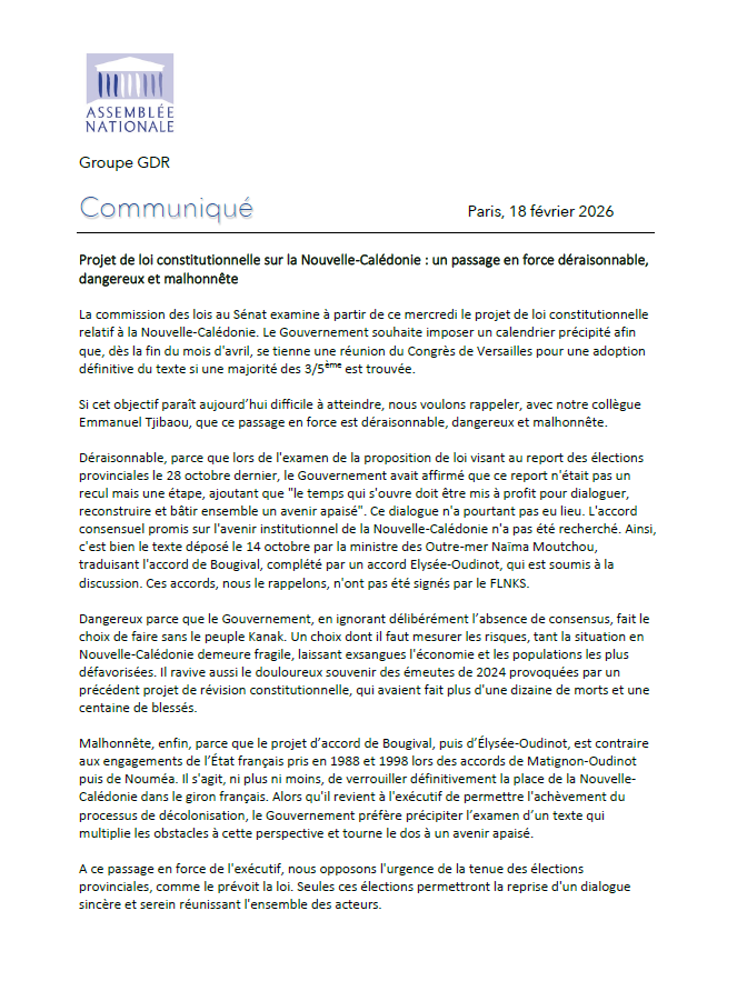 Dangereux parce que le Gouvernement, en ignorant délibérément l’absence de consensus, fait le choix de faire sans le peuple Kanak. Un choix dont il faut mesurer les risques, tant la situation en Nouvelle-Calédonie demeure fragile, laissant exsangues l’économie et les populations les plus défavorisées. Il ravive aussi le douloureux souvenir des émeutes de 2024 provoquées par un précédent projet de révision constitutionnelle, qui avaient fait plus d’une dizaine de morts et une centaine de blessés.