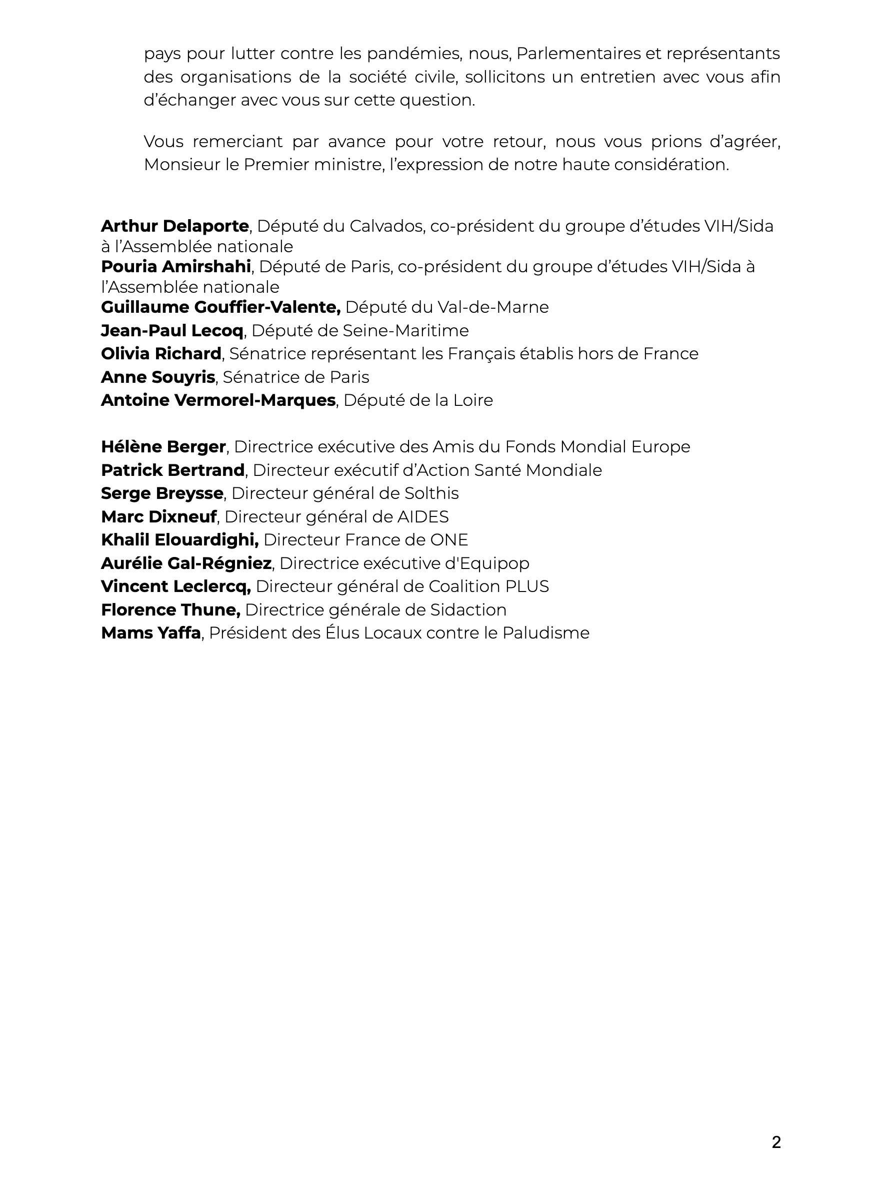 Avec des parlementaires et représentants d’ONG, nous avons adressé un courrier au Premier ministre.