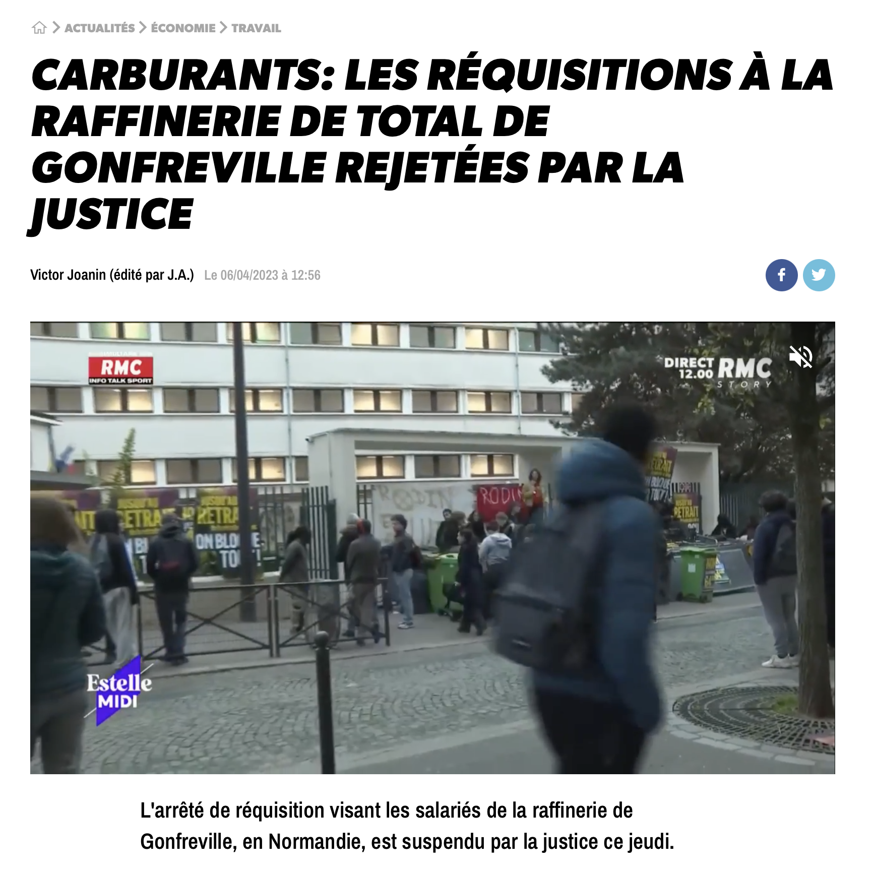 Le tribunal suspend les réquisitions à la raffinerie de Normandie (06-04-2023)