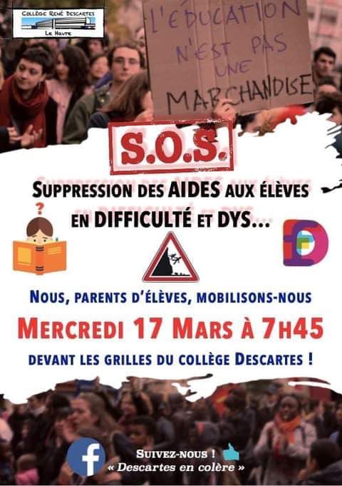 17 mars - La mobilisation continue au collège Descartes, cible d’une baisse de moyens éducatifs (…)
