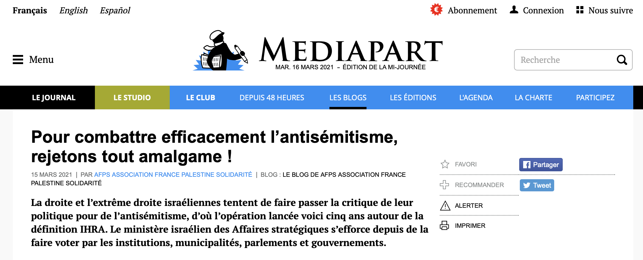 Pour combattre efficacement l’antisémitisme, rejetons tout amalgame ! (15-03-2021)