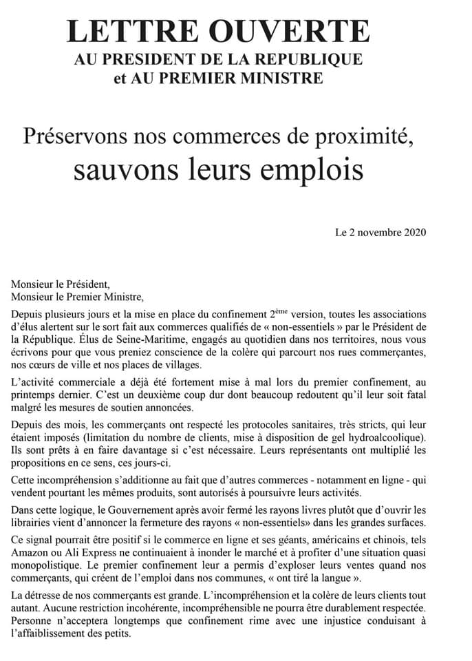 Pour la réouverture des commerces de proximité (02-11-2020)