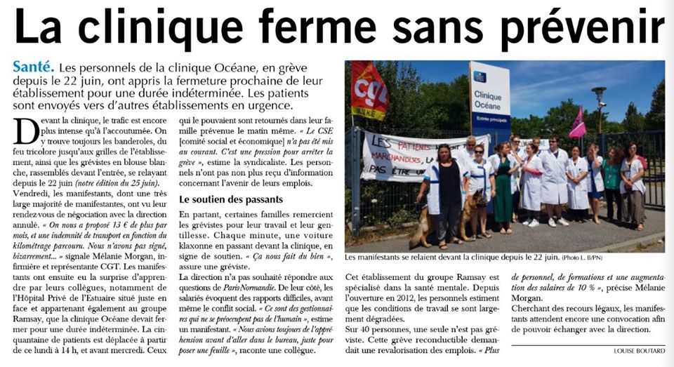 15 juillet - Comme dans de nombreux établissements hospitaliers, les personnels de la clinique (…)
