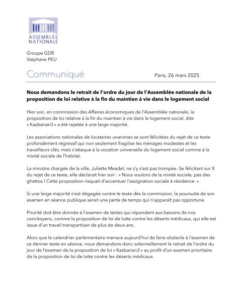 Nous demandons le retrait de l’ordre du jour de l’Assemblée Nationale de la honteuse proposition de loi Kasbarian (26-03-2025)