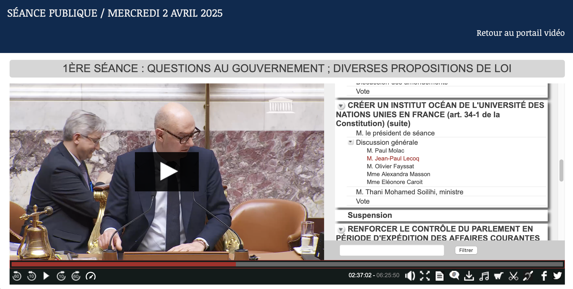 Mon soutien à l’implantation de l’Institut Océan de l’université des Nations unies en France (02-04-2025)