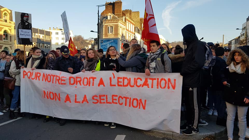 Grande marche en rouge, blanc et jaune, la jeunesse en tête dans les rues du Havre (14-12-2018)
