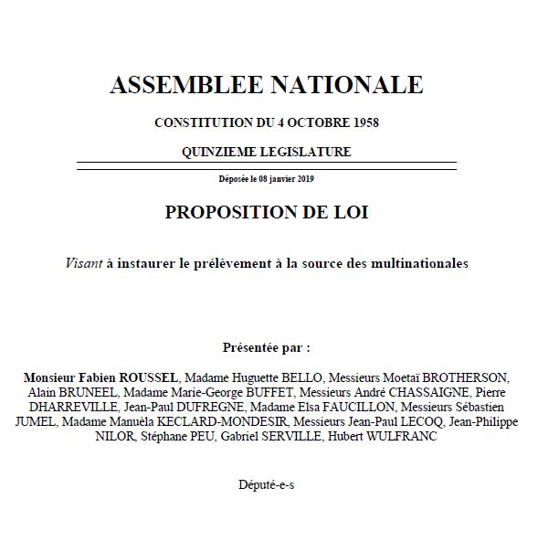 J’ai co-signé une proposition de loi pour imposer le prélèvement de l’impôt à la source pour les multinationales (08-01-2019)