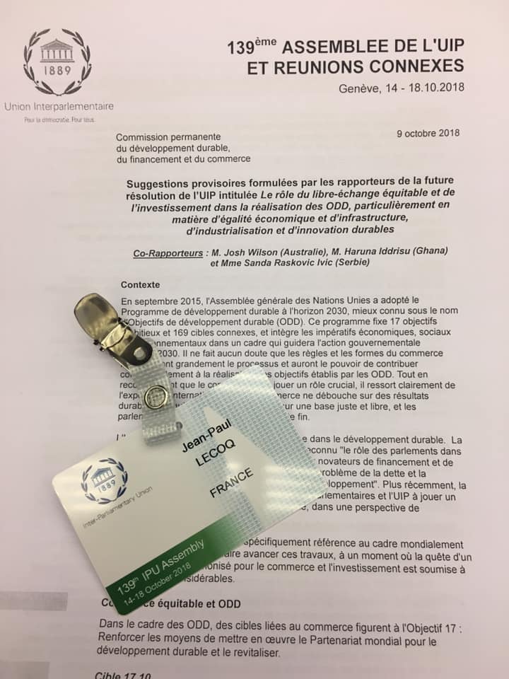 139ième cession de l’union interparlementaire à Genève (16-10-2018)