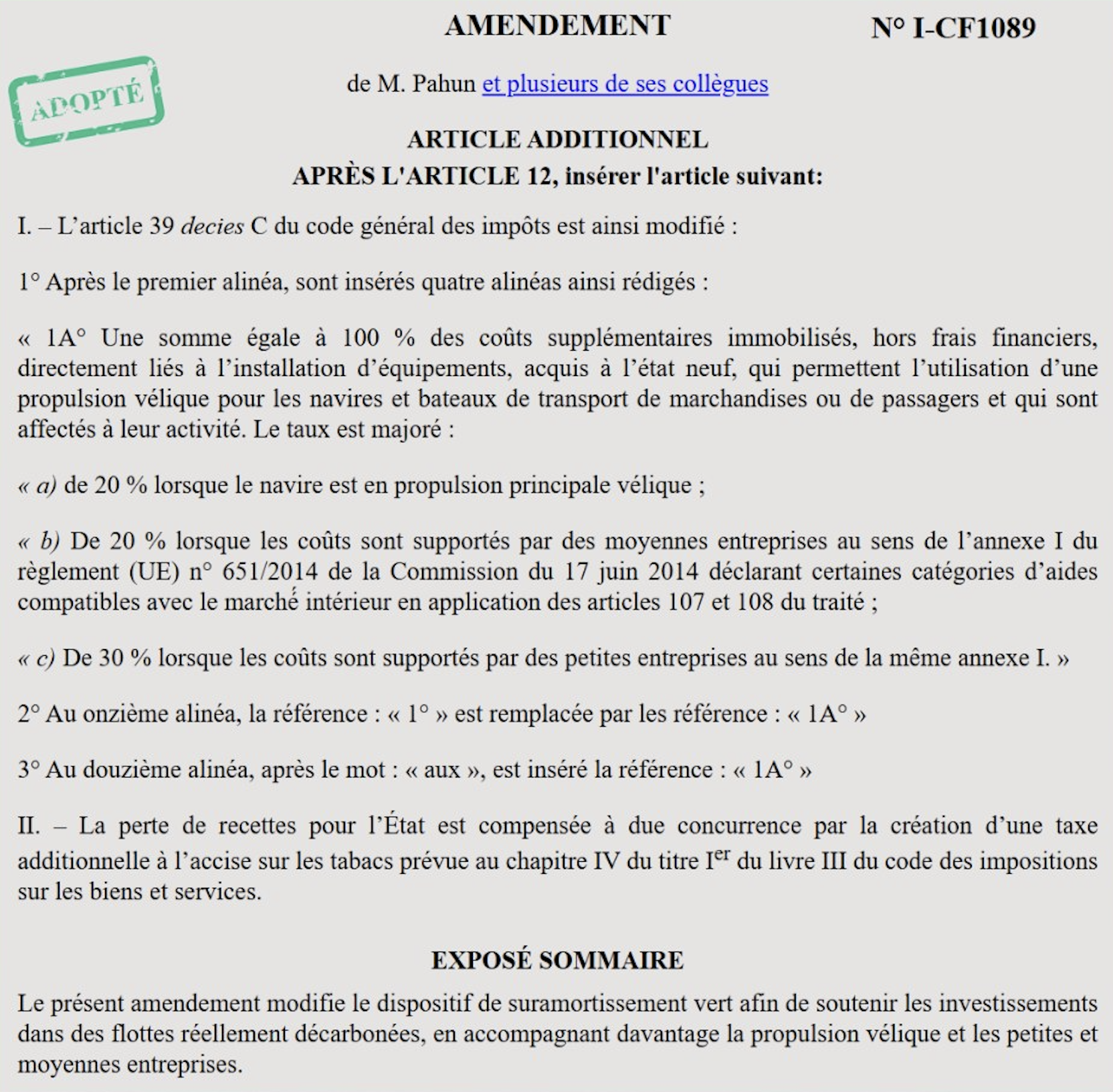 Amendements adoptés dans le projet de loi de finances de l’Etat pour soutenir la marine marchande à la voile (27-10-2025)