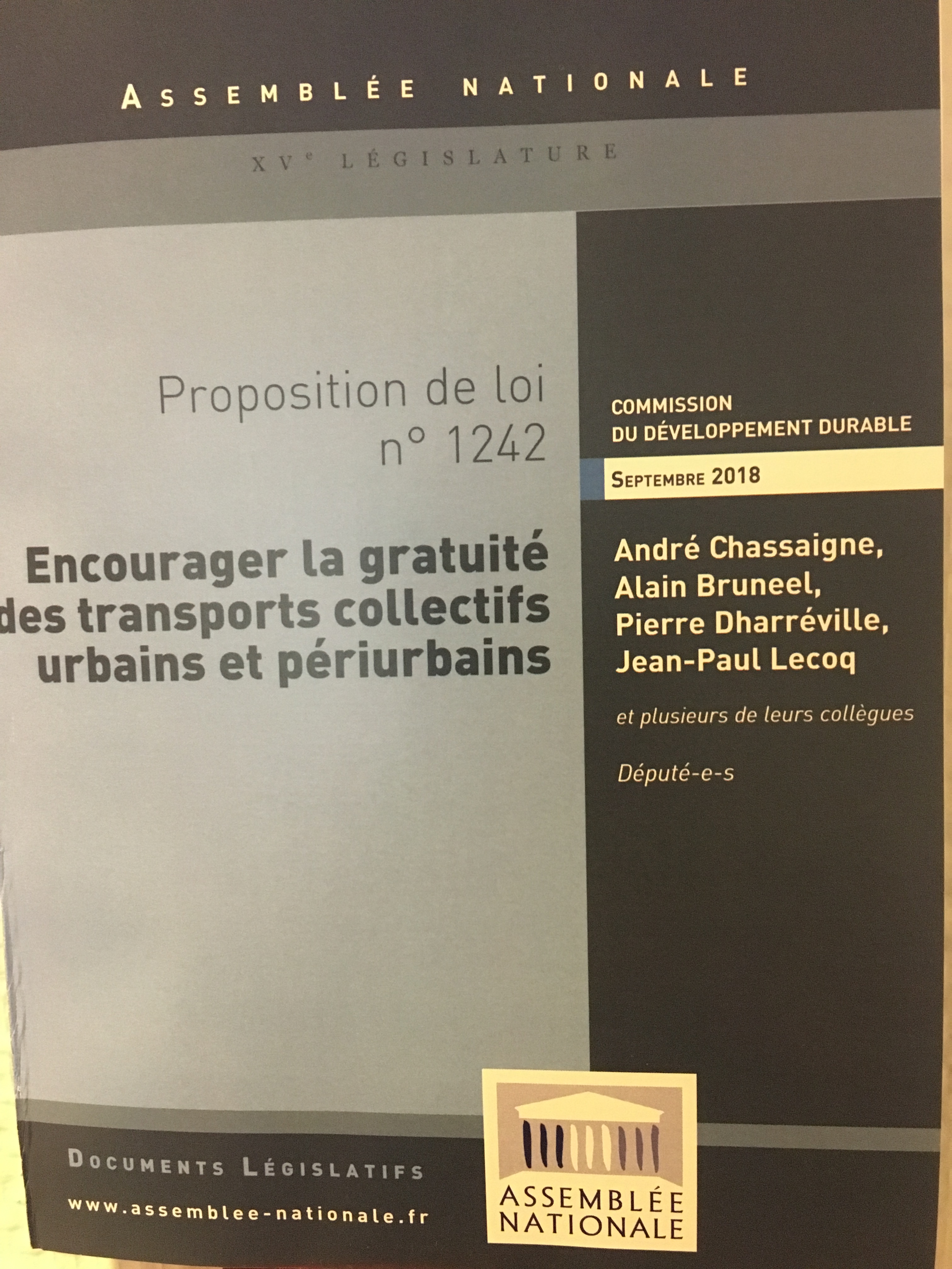 J’ai co-signé une proposition de loi visant à encourager la gratuité des transports collectifs urbains et périurbains (01-10-2018)