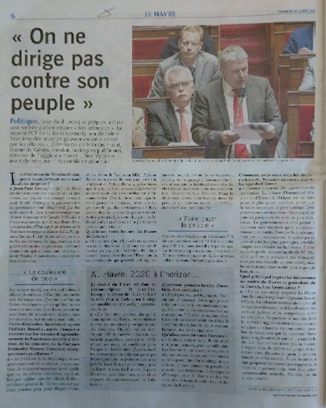 Interview de rentrée ce matin dans les colonnes de la Presse Havraise (31-08-2018)