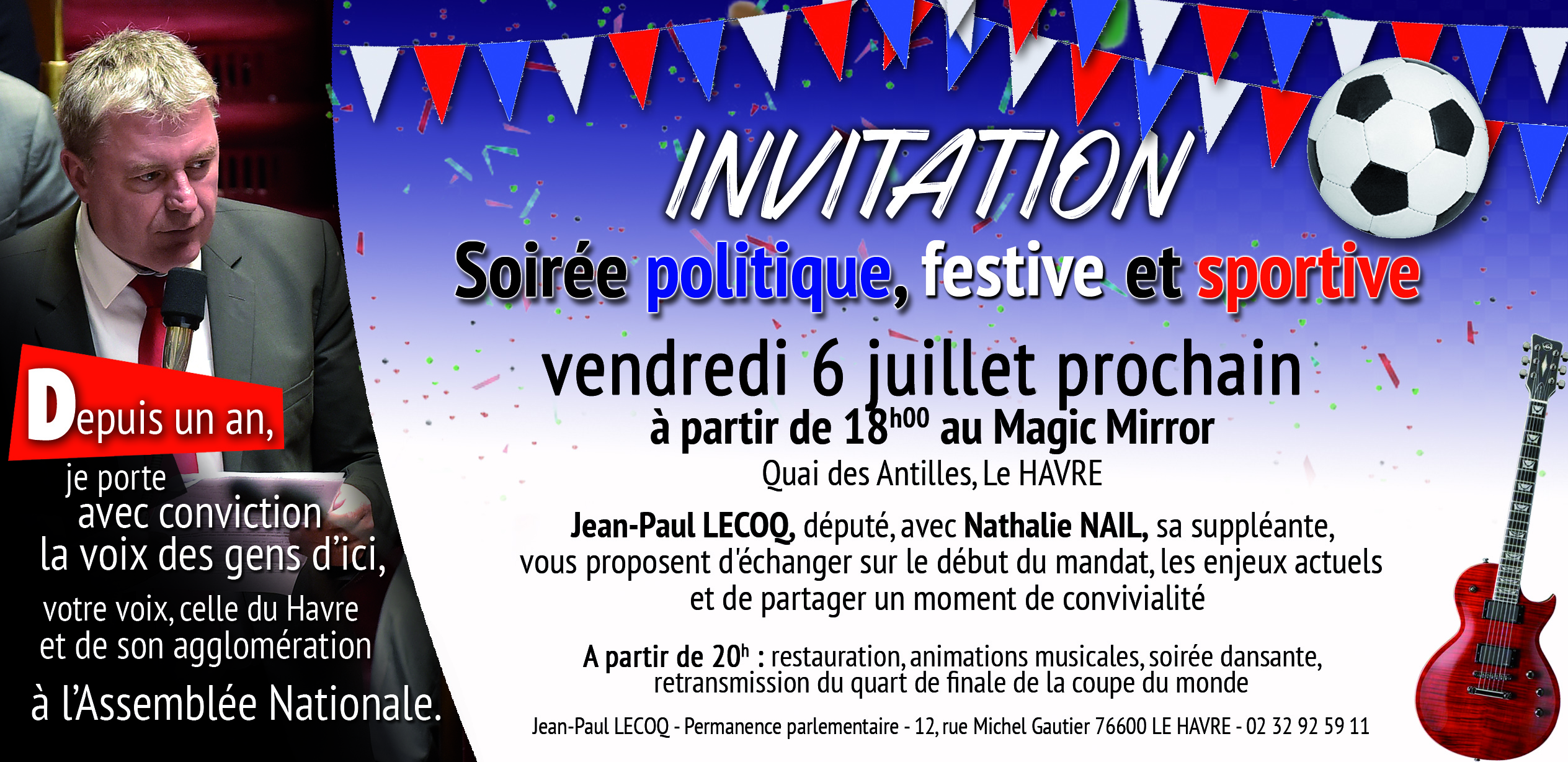 Soirée politique, festive... et sportive ce soir au Havre à l’issue de la première année du mandat parlementaire (07-07-2018)