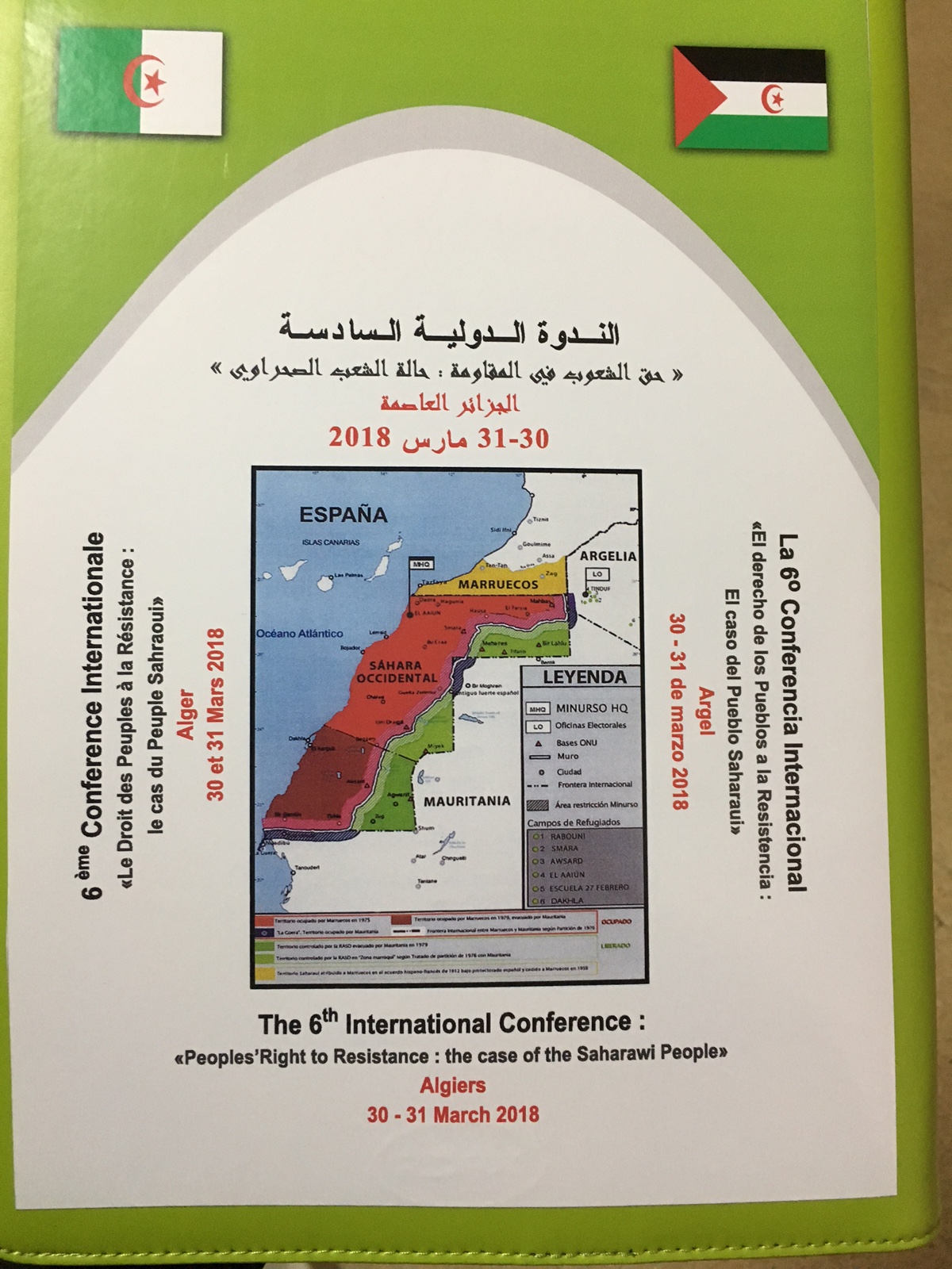 A la conférence internationale d’Alger pour le Sahara Occidental, j’ai plaidé en faveur du droit à la résistance des peuples colonisés (30-03-2018)