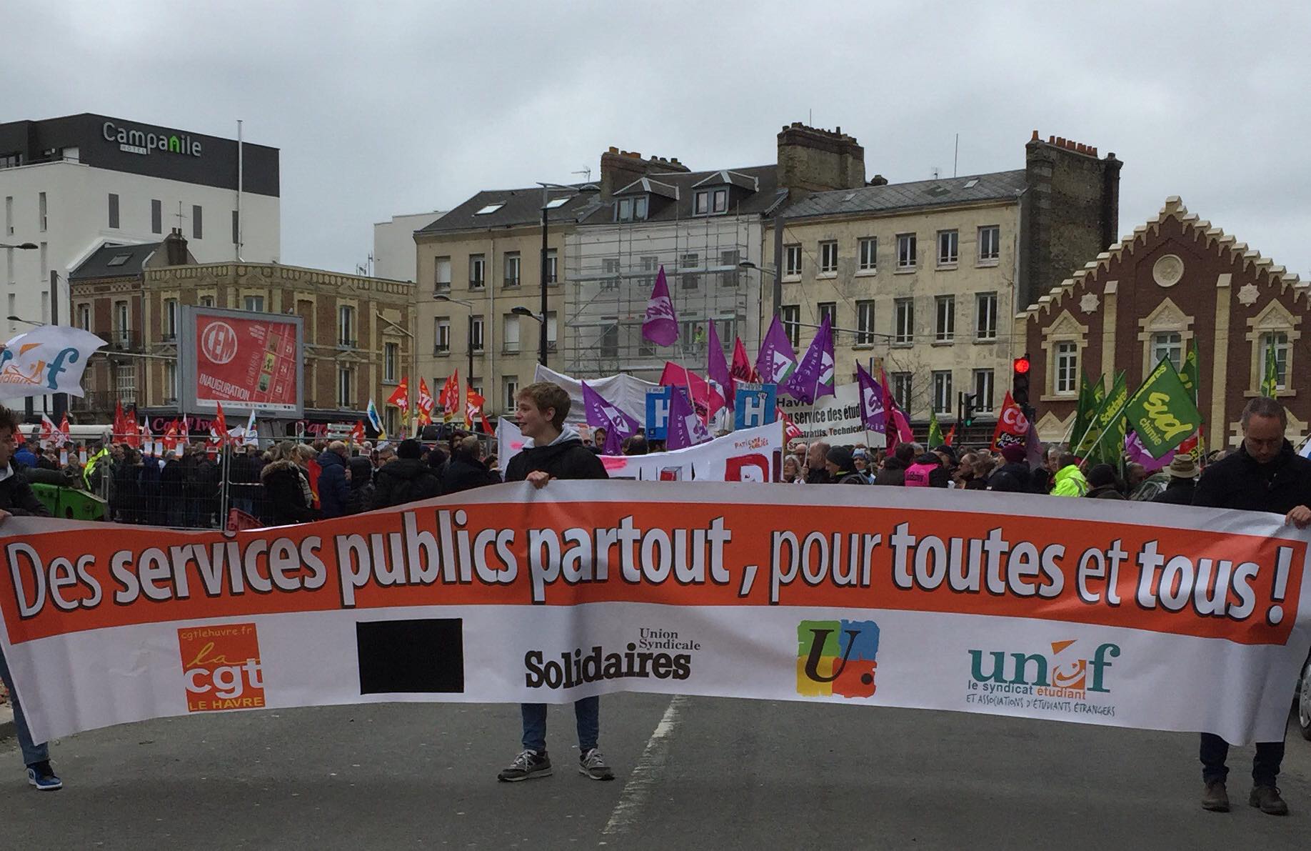 Mobilisation d’ampleur au Havre comme dans tout le pays contre la politique Macron-Philippe (22-03-2018)