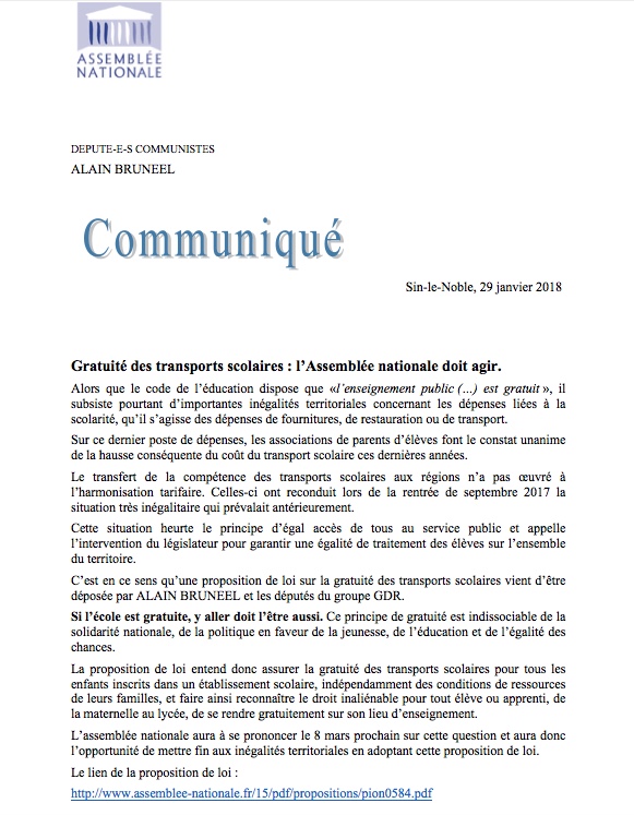 J’ai co-signé une proposition de loi pour rendre gratuit les transports scolaires (29-01-2018)