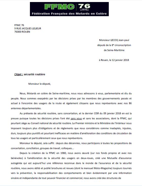 FFMC 76 : la politique de sécurité routière du gouvernement en question... (17-01-2018)