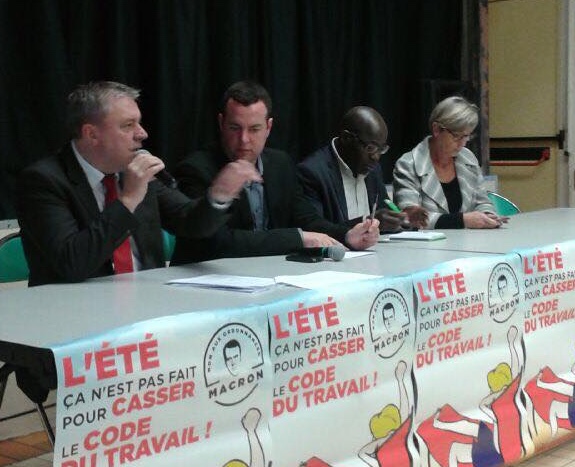 Débat à Giberville contre les ordonnances de casse du Code du travail (11-11-2017)