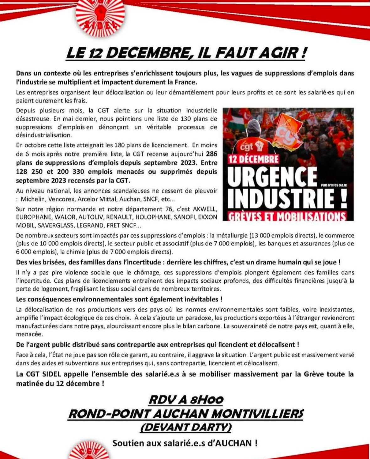 12 décembre - Mon plein soutien et ma pleine solidarité aux travailleurs d’Auchan mobilisés pour (…)