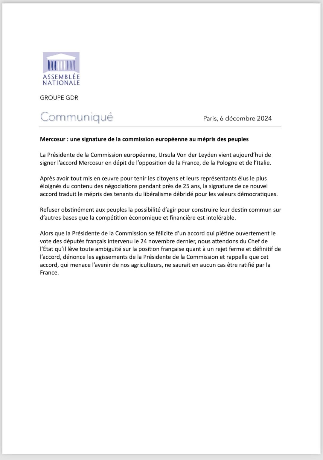 MERCOSUR : la Commission Européenne passe en force ! (06-12-2024)