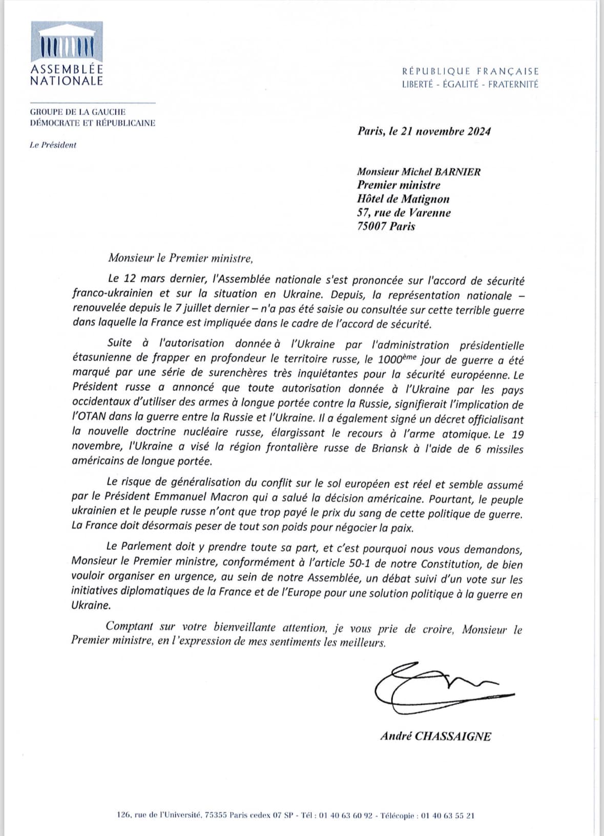 Nous demandons un débat sur la guerre en Ukraine sur la base de l’article 50-1 de la Constitution (21-11-2024)