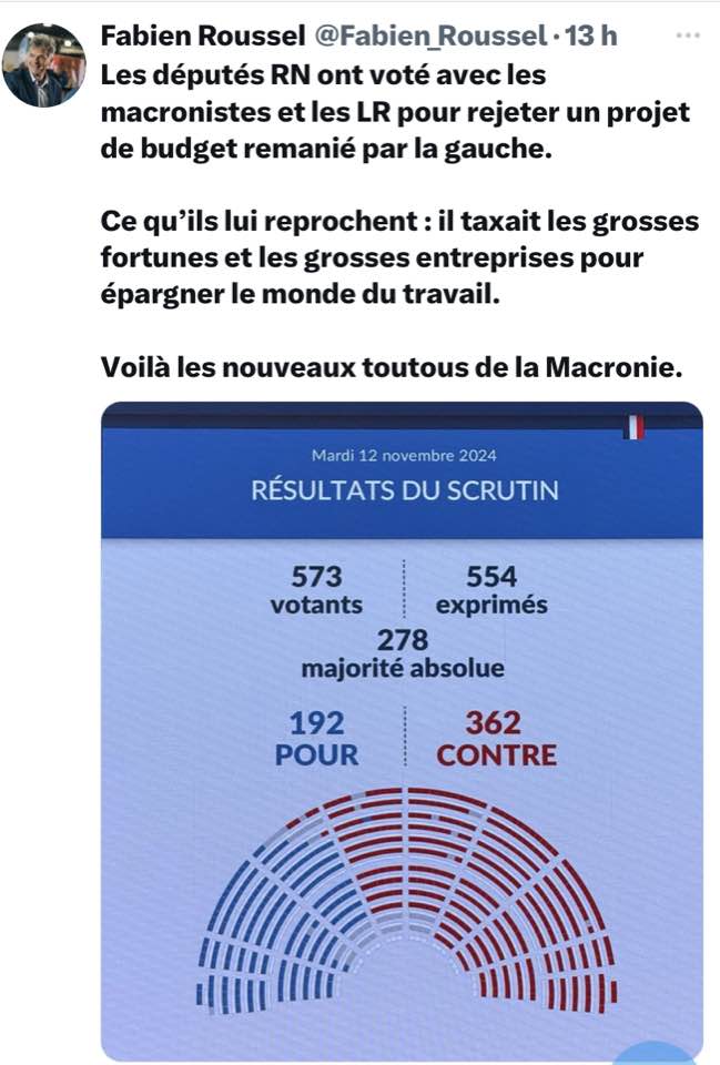 Projet de budget de l’Etat 2025 : le R.N. vole au secours du gouvernement (12-11-2024)
