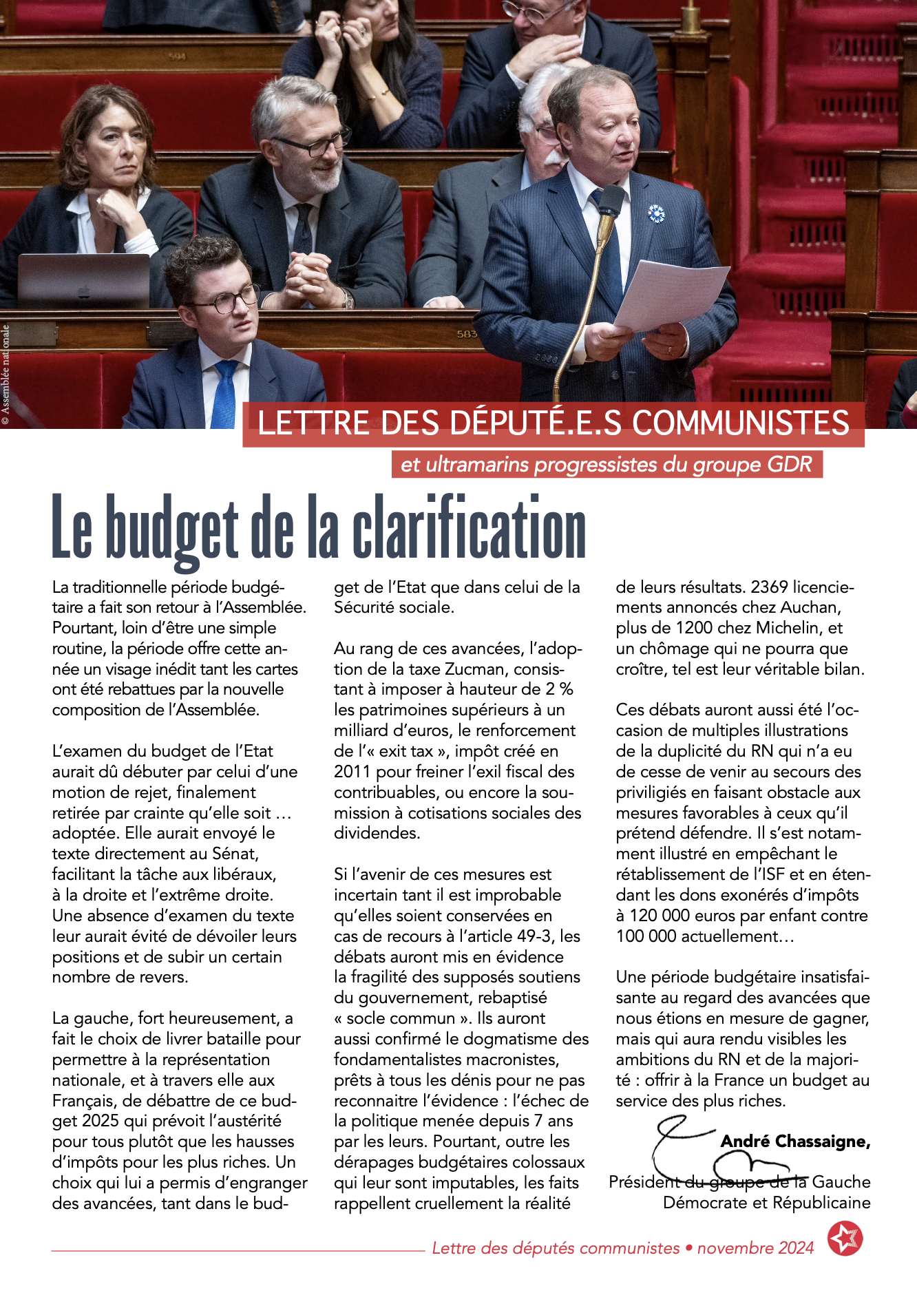 La lettre de novembre du groupe de la Gauche Démocrate et Républicaine (19-11-2024)