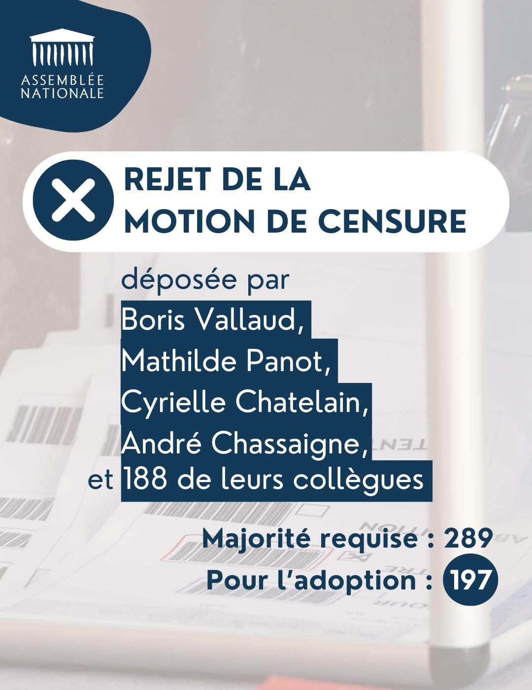 Motion de censure : le gouvernement Barnier sauvé par le RN (08-10-2024)