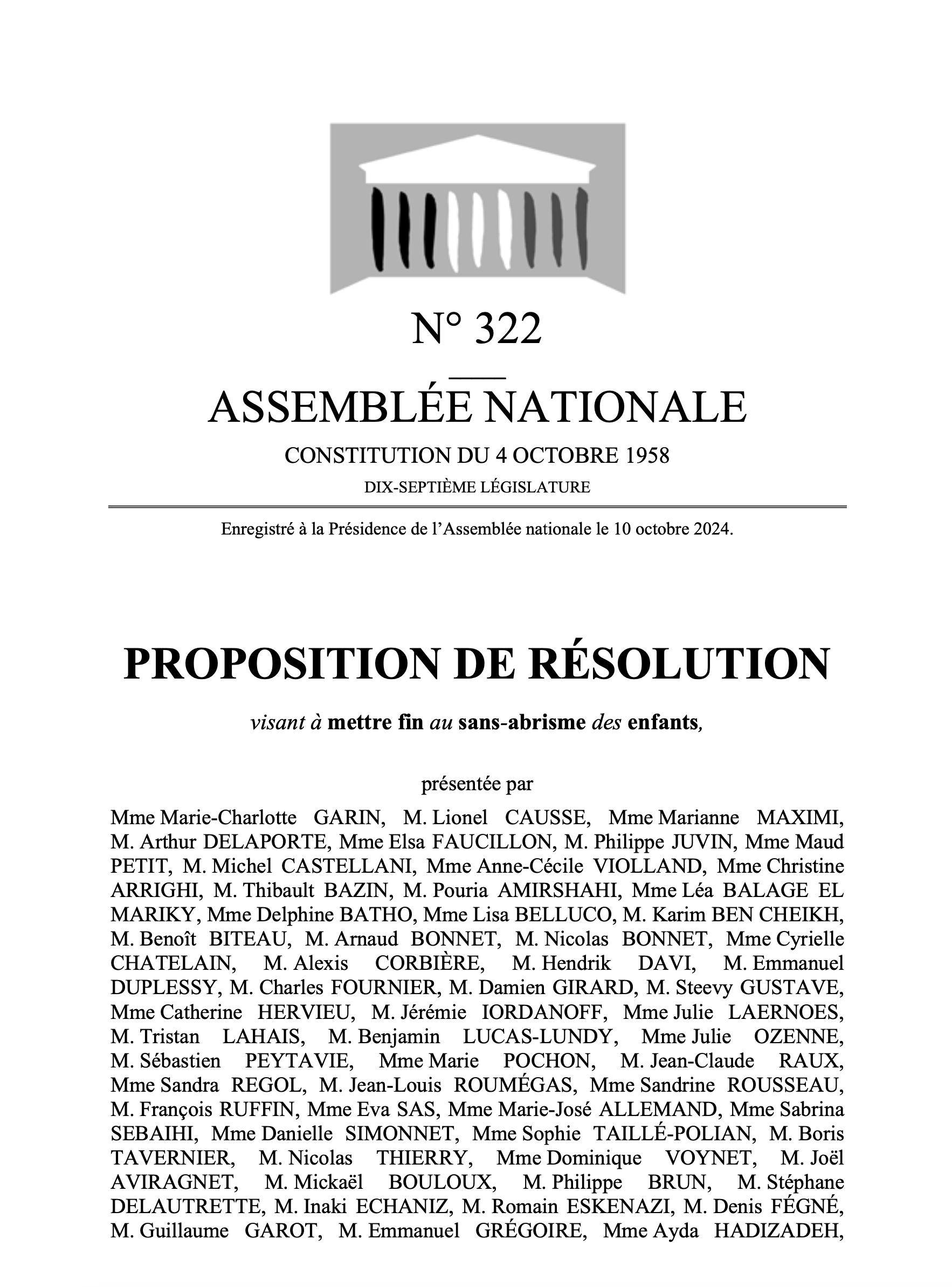 Je co-signe une proposition de résolution pour mettre fin au "sans-abrisme"des enfants (10-10-2024)