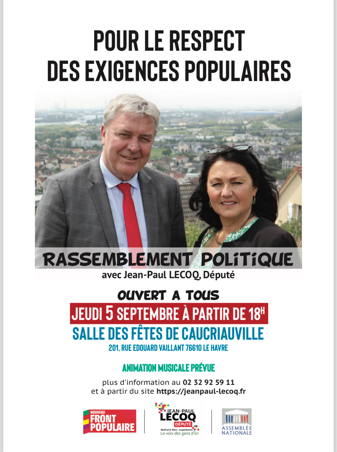 5 septembre - Pour le respect des exigences populaires, j’invite à un rassemblement le jeudi 5 (…)