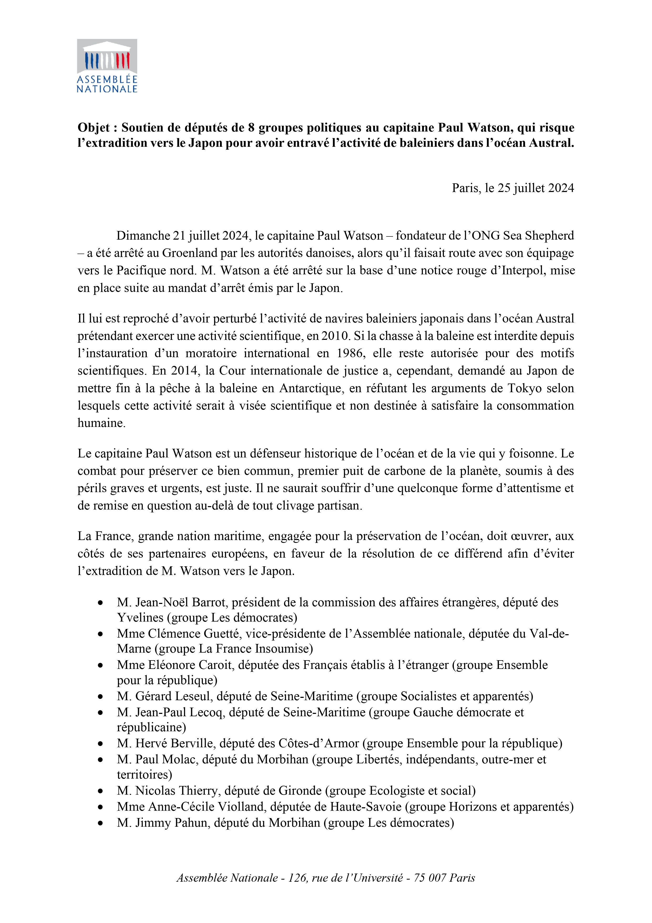 Plein soutien au capitaine Paul Watson ! (25-07-2024)