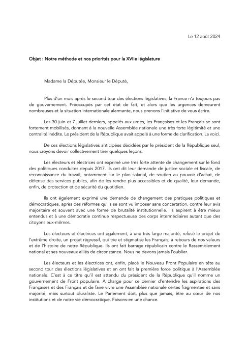 Nommer Lucie Castets à Matignon : seule suite logique, saine et juste (26-08-2024)