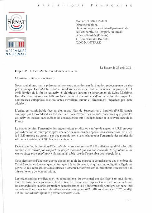 L’Etat doit impérativement rejeter le Plan de licenciements déposé unilatéralement par la cynique multinationale ExxonMobil ! (22-08-2024)