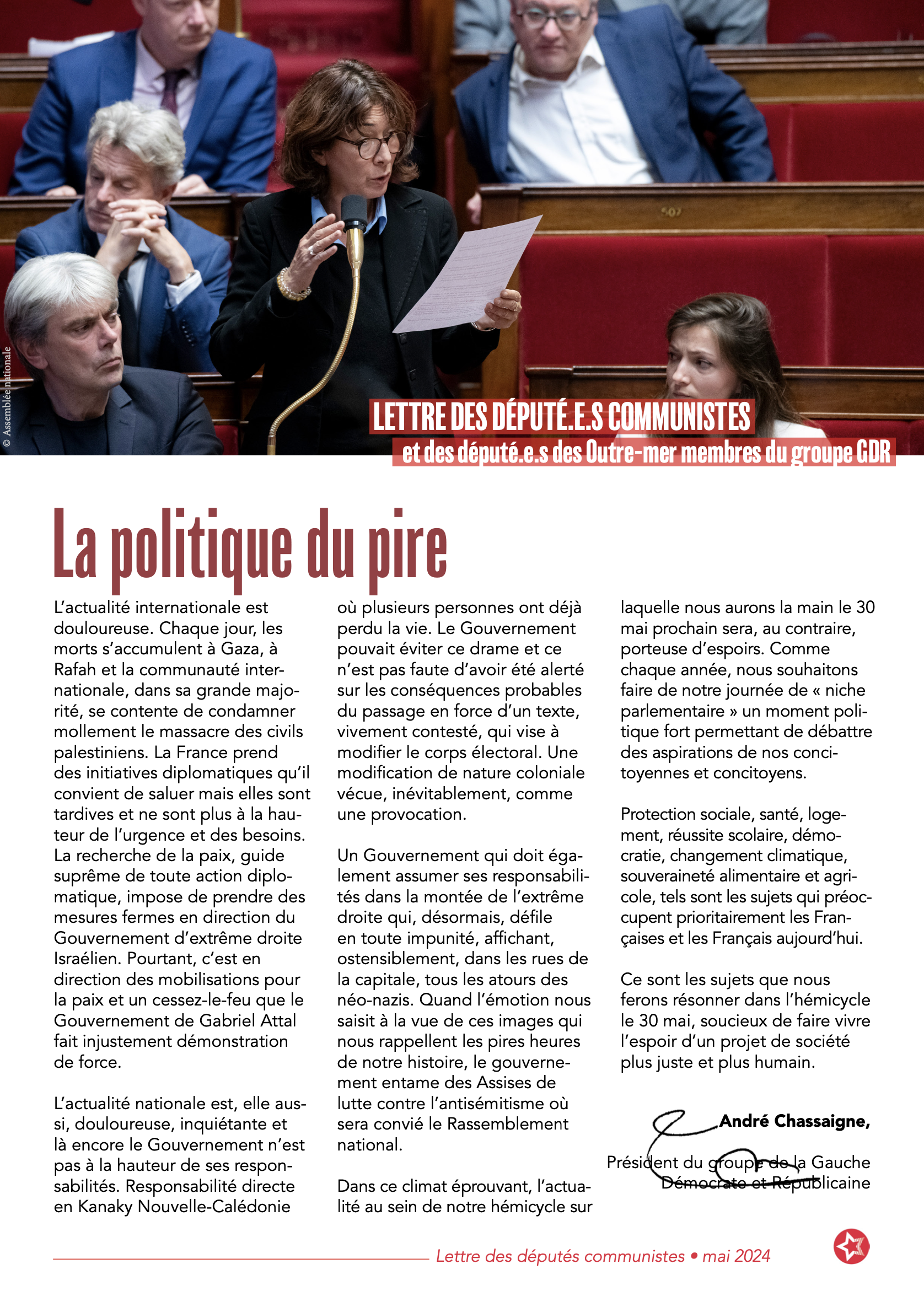 La lettre de mai du groupe de la Gauche Démocrate et Républicaine (28-05-2024)