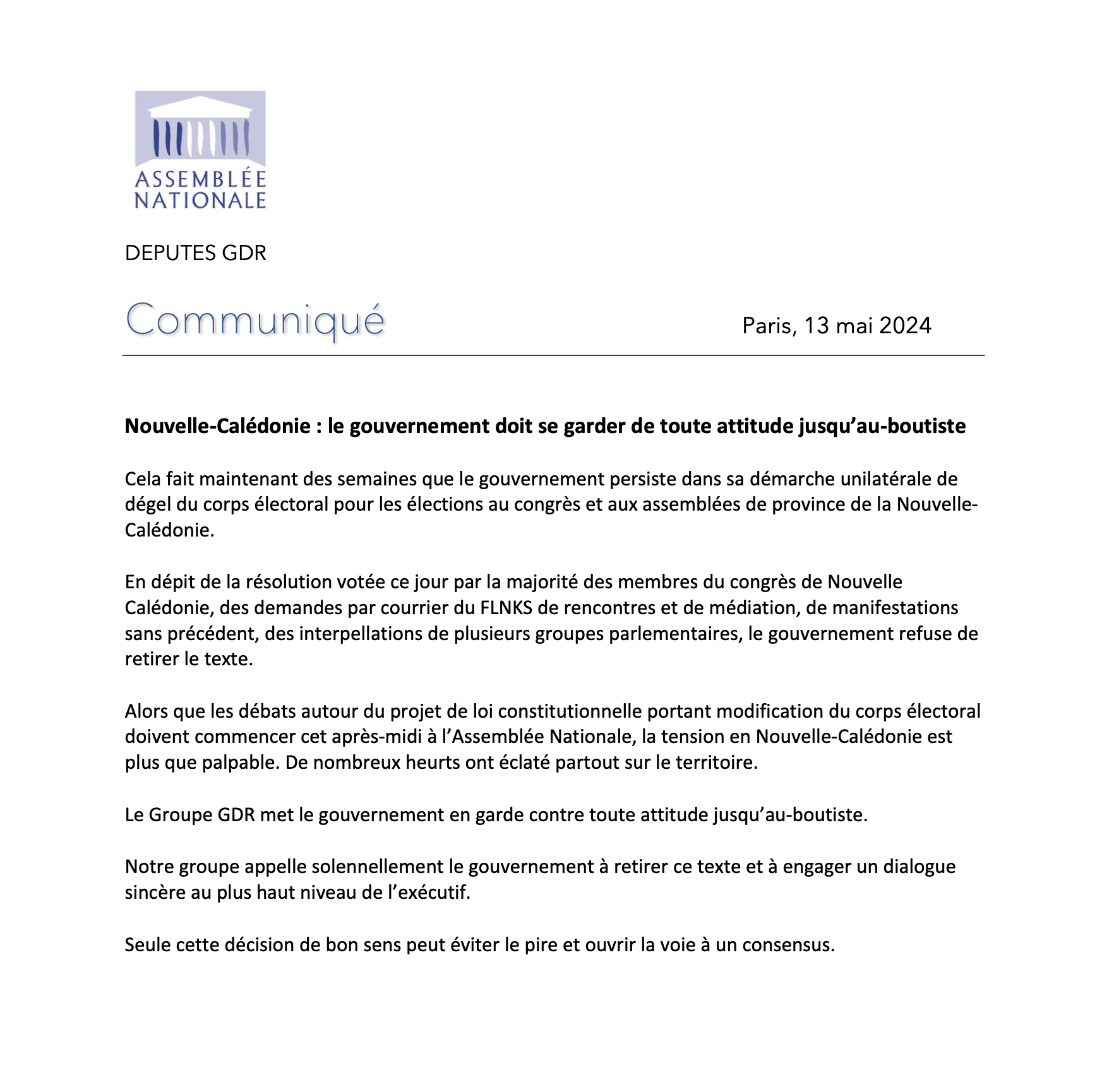 13 mai - Très inquiets concernant la situation en Nouvelle-Calédonie, avec mes collègues députés (…)
