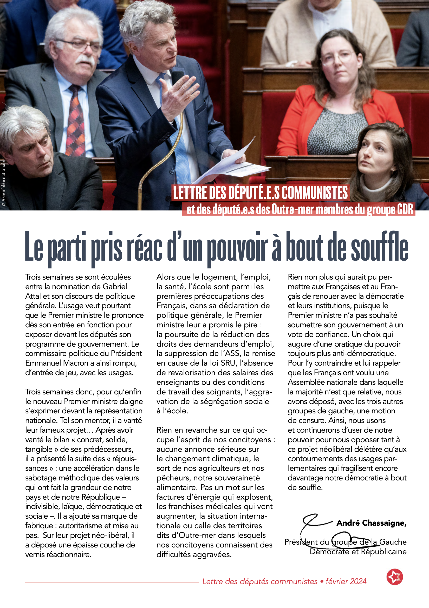 Edition de février de la lettre du groupe de la Gauche Démocrate et Républicaine (23-02-2024)