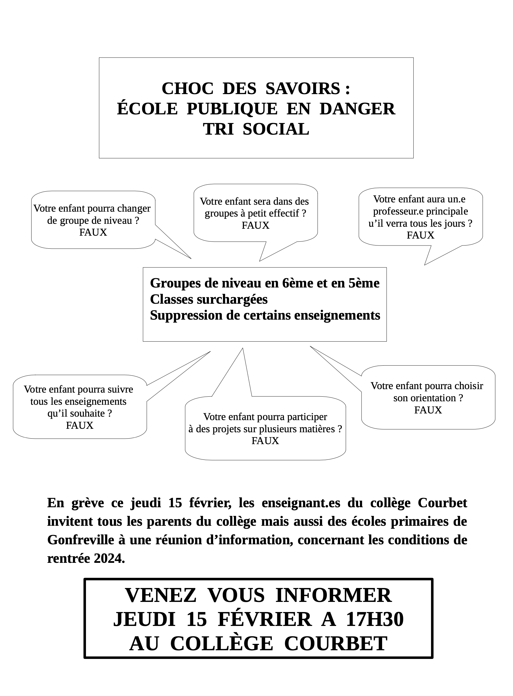 Non aux groupes de niveau au collège, pas de ségrégation sociale pour nos enfants (15-02-2024)