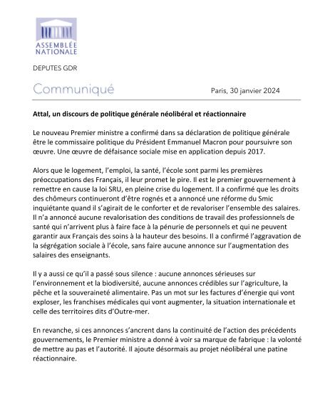 Discours de politique générale de G. Attal : on est bien dans un Etat de Droite... (30-01-2024)