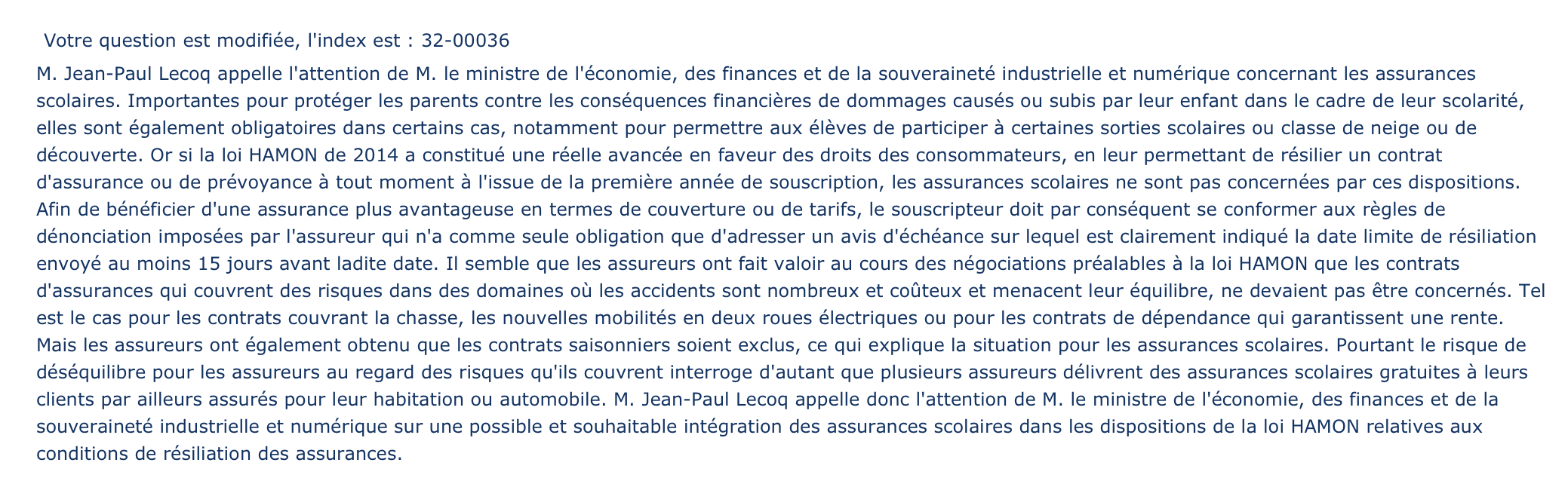 Démarche pour que les assurances scolaires entrent dans le cadre des dispositions de la loi Hamon (28-08-2023)