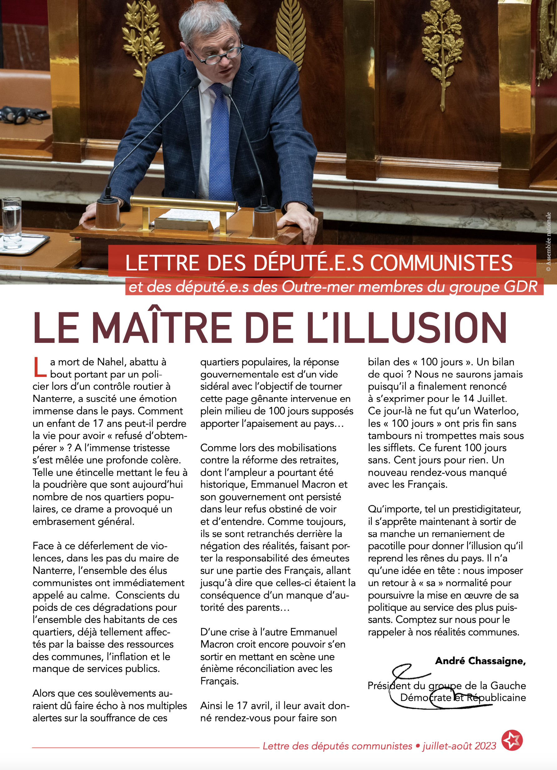 La lettre d’été des Députés du groupe de la Gauche Démocrate et Républicaine (01-08-2023)