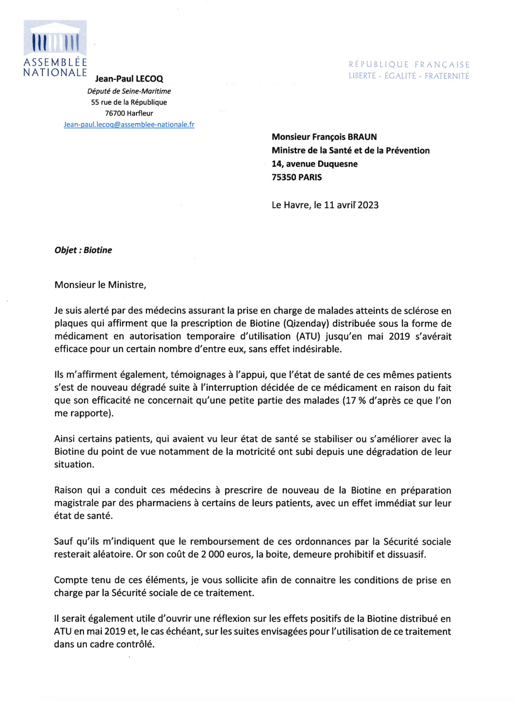 Sclérose en plaques : je questionne à propos de la Biotine (14-04-2023)