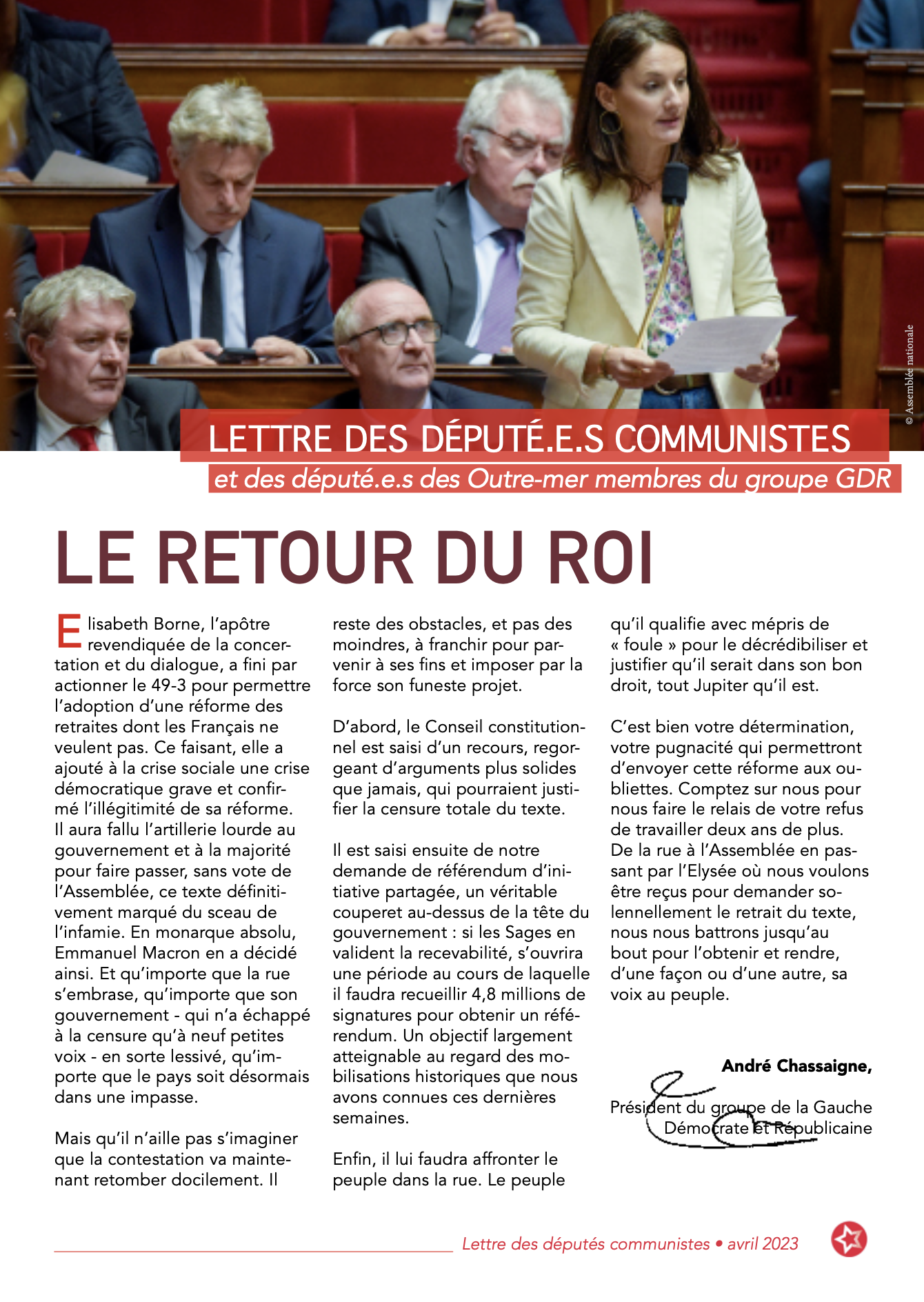 La lettre du mois d’avril des élus de la Gauche Démocrate et Républicaine (11-04-2023)