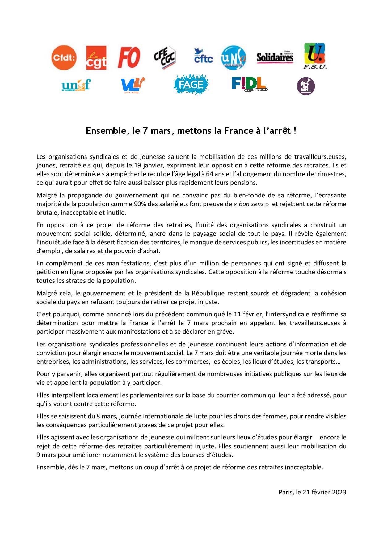 Réforme des retraites : plus aucun argument ne tient pour la justifier ! (24-02-2023)