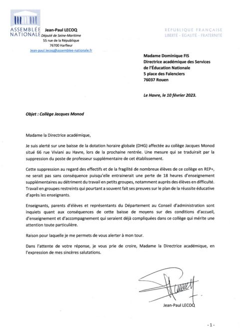Monod et Pagnol : Baisse de moyens pour deux collèges en REP+, j’alerte aussitôt (15-02-2023)